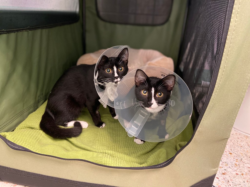 Cat Life, The Orcas by The Woman09/03/20205:32 pm05/09/2023 the cone of shame The girls went through surgery with no issues. The vet said no jumping and to keep the cones of shame on. We just laughed really, really hard. – the Woman Share this: Share on X (Opens in new window) X Share on Facebook (Opens in new window) Facebook Share on Pinterest (Opens in new window) Pinterest Share on Tumblr (Opens in new window) Tumblr Share on Reddit (Opens in new window) Reddit Like Loading... Related