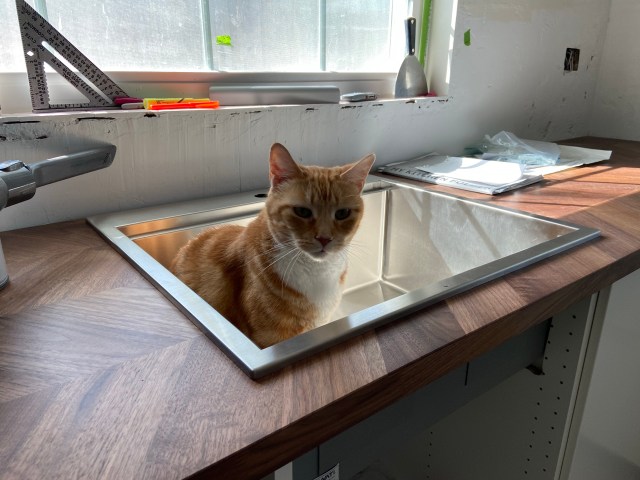 The woman and her man are slowly making progress in the kitchen. – Frank the Tank